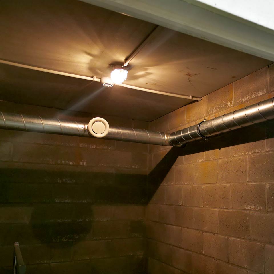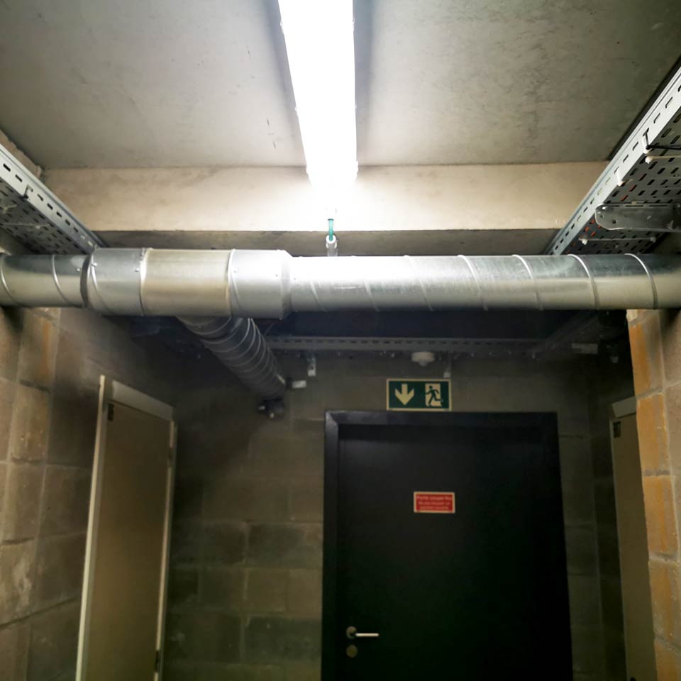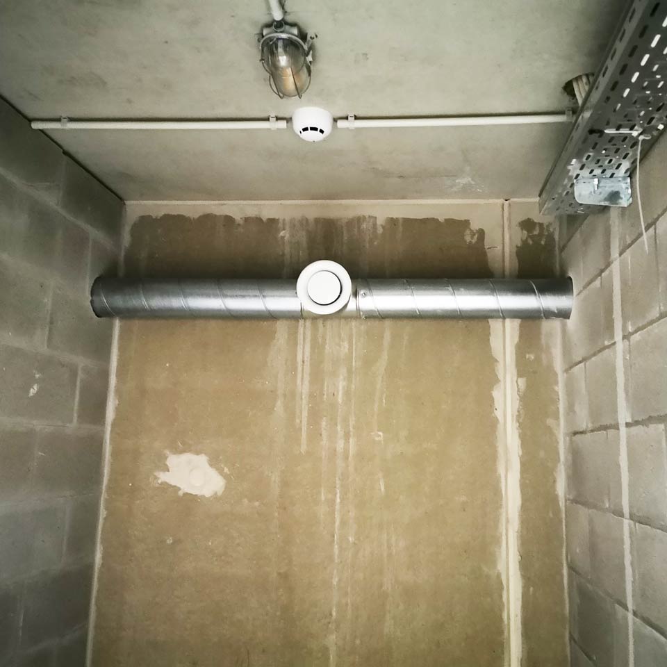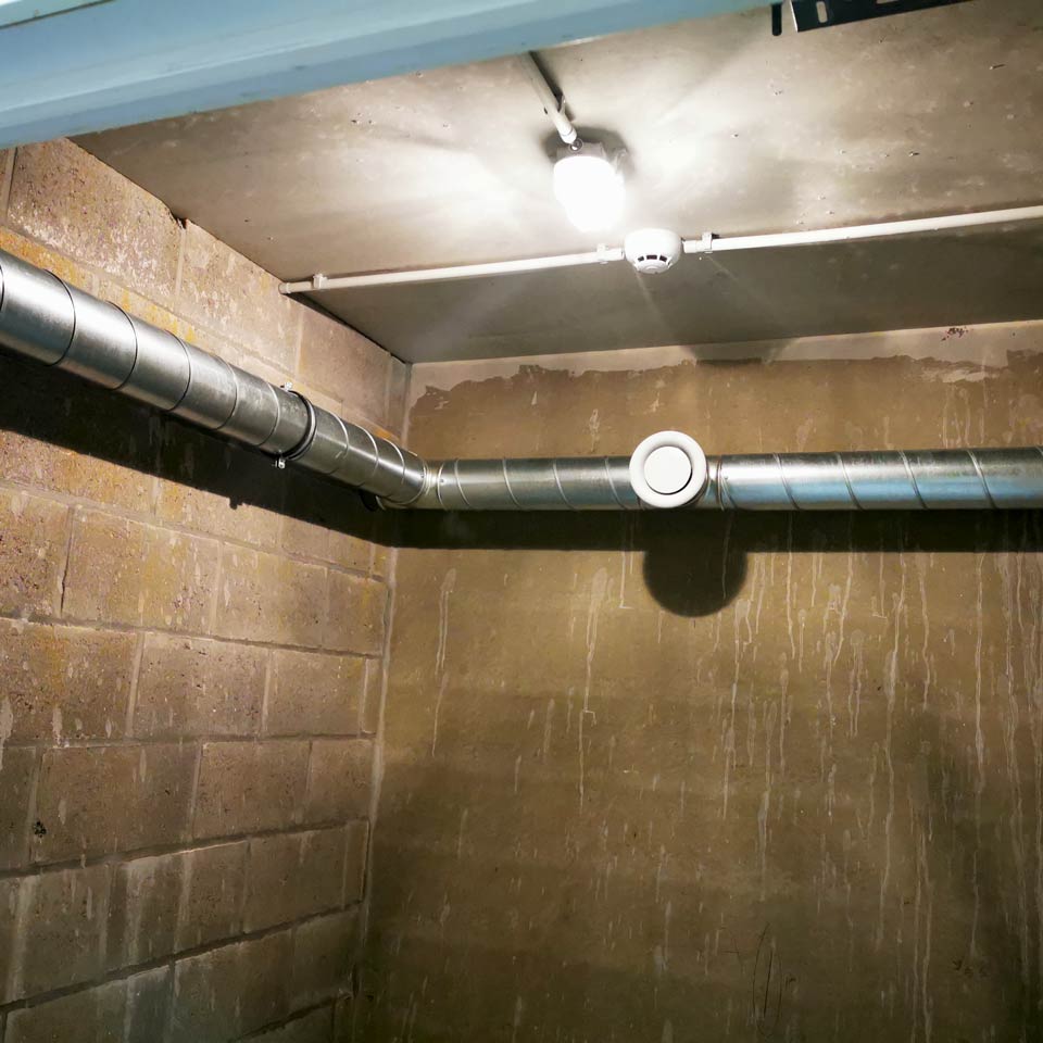 Pose d’un gainage pour une ventilation simple flux dans des caves.