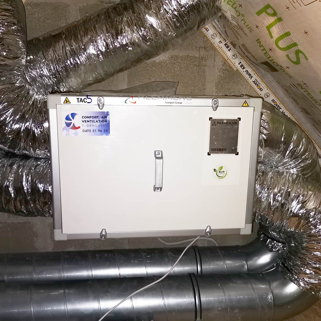 Installation d’une ventilation double flux dans une maison de la région de Chaumont-Gistoux.